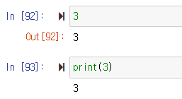 그렇게 자동 실행된 값은 Out[#]으로 나타나고 아닌건 아무것도 붙지 않음.