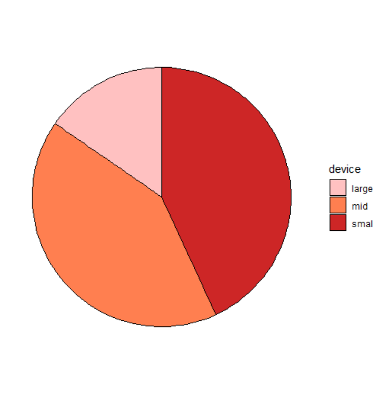 위 데이터는 small, midium, large 사이즈 device의 비율을 pie chart 로 그린 것이다.